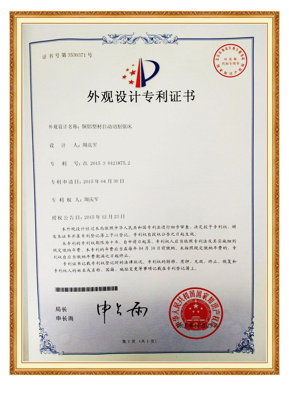 公司多款設(shè)備擁有專利及實(shí)用新型專利證書(shū),實(shí)用性有可觀的提高,新型產(chǎn)品解決了企業(yè)使用老式切割機(jī)鋸切材料效率低,安全性差,精度不達(dá)標(biāo)等問(wèn)題,有效為客戶提高了產(chǎn)能并節(jié)省了人工成本,取得了客戶一定程度的認(rèn)可
